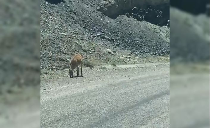 Dağ keçileri karayoluna indi