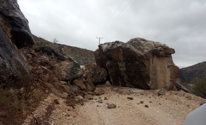 Adıyaman’ın Sincik ilçesi Pınarbaşı köy yoluna 24 Ocak tarihinde ki Elazığ Sivrice depremi nedeniyle düşen büyük kaya parçası ulaşımı engelliyor.