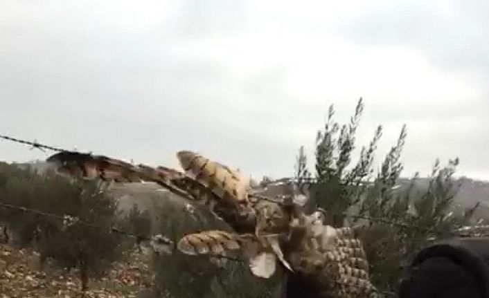 Adıyaman’da, bir bahçenin dikenli tellerine takılan baykuş, vatandaşlar tarafından kurtarıldı.