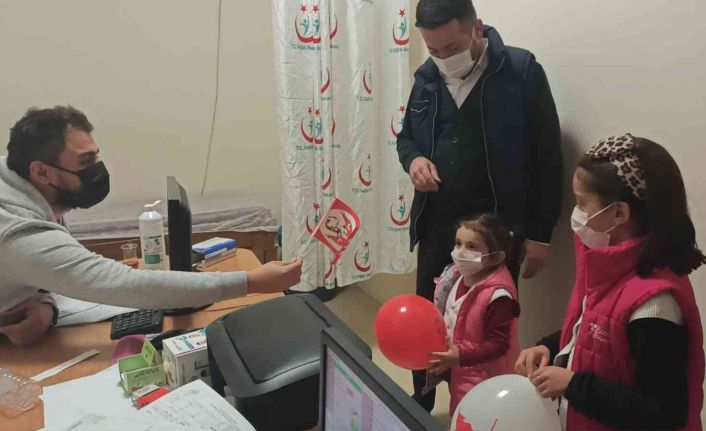 Adıyaman’ın Gölbaşı İlçe Devlet Hastanesi’nde görevli doktor tedaviye gelen çocuklara Cumhuriyet Bayramı nedeniyle Türk Bayrağı ve balon hediye etti.