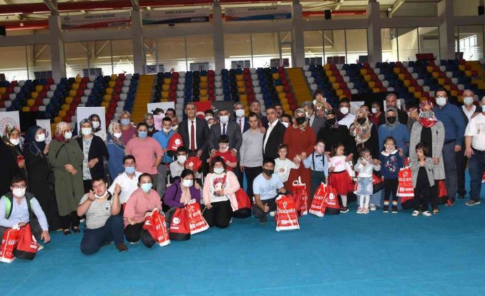 Konuşmaların ardından Vali Mahmut Çuhadar, 40 Down Sendomlu çocuğa içinde spor malzemeleri ve ekipmanlarından oluşan bir çanta dağıttı.