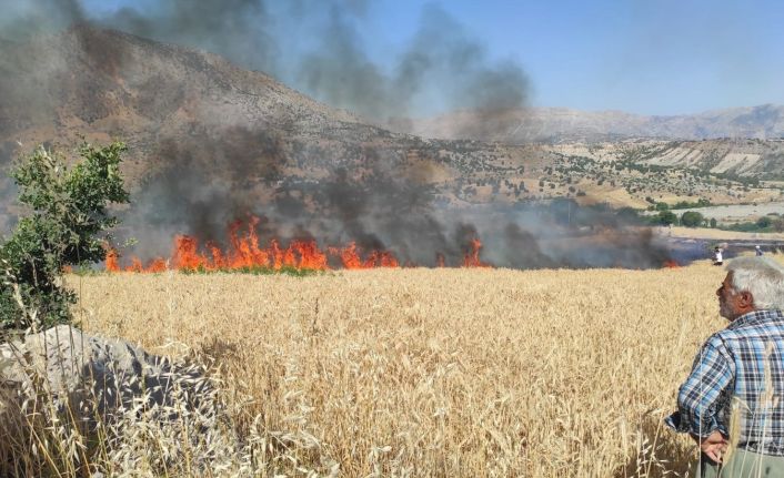 Adıyaman’ın Sincik ilçesinde elektrik tellerinden çıkan kıvılcımlardan dolayı çıkan ekin yangını, bir yıllık emekleri küle çevirdi.
