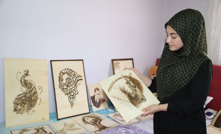 Adıyaman’ın Sincik ilçesinde 11 yaşında yakalandığı hastalıktan dolayı yürüme zorluğu çeken Engelli Sema Nur Aktan (19), ahşap tahta yakarak yaptığı tablolarla tekrar hayata tutundu.