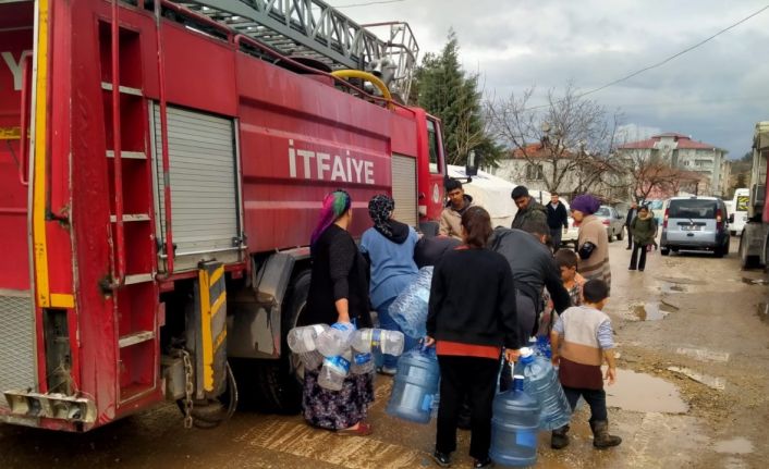 Adıyaman’ın Gölbaşı Belediyesi İtfaiye Müdürlüğü ekipleri yıkıcı depremin yaşandığı ilçede vatandaşlara temizlik için tankerlerle su dağıtımı yapılıyor.
