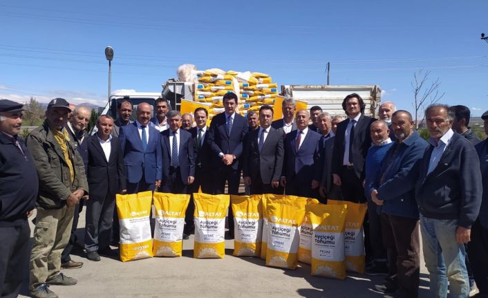 Ayçiçek tohumları verilen çiftçilere bol kazançlar dilendi. Ayçiçeğinin üretimin Adıyaman’da her geçen yıl biraz daha artış gösterdiğini vurgulayan Müdür Erdal Yılmaz, “İlçemize bağlı Çelik köyünde yoğun üretimi yapılan ve her geçen gün üretim alanı artan yağlık ayçiçeği kazançlı ürünler arasında yer almaktadır. Kuru şartlarda ekimi Nisan ayı içerisinde yapılan ve Ağustos ayında hasat olgunluğuna erişen tablalardan dekara ortalama 120-130 kilogram çekirdek elde edilmektedir. Kuş zararlısına karşı boynu eğik çeşit tercih edilmiş olup yağ randımanı yüzde 30-40 aralığındadır. İlçemizde sadece Çelik köyünde üretimi yapılan ayçiçeğinin bu yıl komşu köyler tarafından da benimsenerek üretime geçildiği görülmüştür. Üç yıl önce bin ile bin 500 dekar olan üretimin bu yıl 5 bin dekara çıktığını görüyoruz. Tohum girdi desteği ile birlikte üretim alanının önümüzdeki sezon 10 bin dekara çıkacağını düşünüyoruz. Bu yıl bin 650 kilogram olan tohum desteğimizi yapacağımız projeyle 3 bin kilo yapmayı planlıyoruz. Dağıtılan tohumunun yüzde 70’i bakanlık tarafından desteklenmektedir. 61 Üreticimize dağıtılan hibeli tohumdan dolayı üreticilerimiz memnuniyetlerini dile getirmişlerdir” diye konuştu.