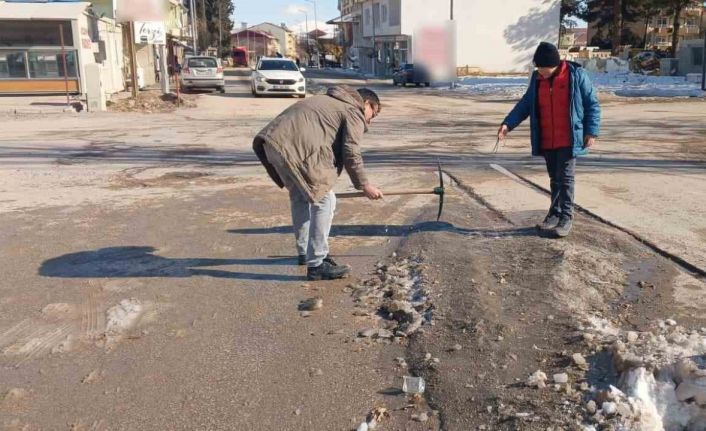 Birkaç gün boyunca etkili olan kar yağışının ardından don olayının yaşanmasıyla caddelerdeki kar kütleleri hem sürücülere hem de vatandaşlar zor anlar yaşatmaya başladı. Çevredeki esnaflar, kimsenin zarar görmemesi için kolları sıvayarak donan karları kazma ve küreklerle kırarak temizlik çalışması yaptı.