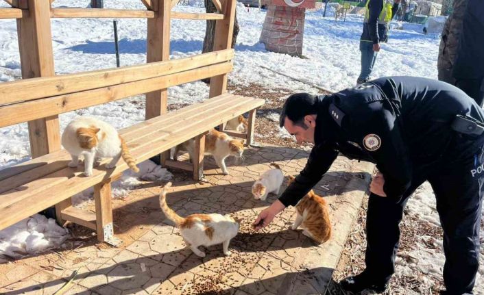 Adıyaman’ın Gölbaşı ilçe Emniyet Müdürlüğü ekipleri, sokak hayvanları için mama ve yem bıraktı.