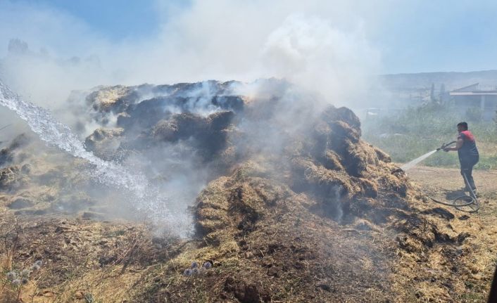 Adıyaman’ın Gölbaşı ilçesinde bir vatandaşa ait saman yığını yanarak küle döndü.