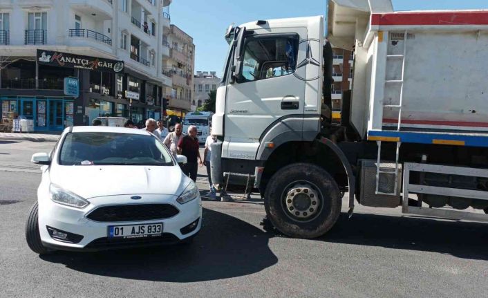 Adıyaman’da, hafriyat kamyonunun çarptığı otomobil sürüklenerek hasar gördü.