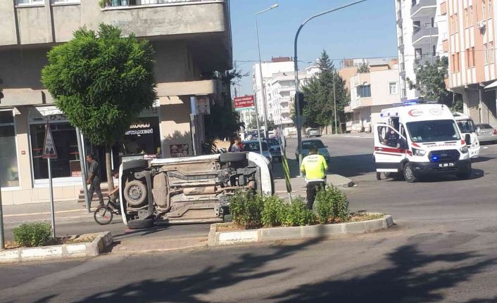 Adıyaman’da, otomobille çarpıştıktan sonra taklalar atarak yan yatan otomobilin sürücüsü yaralandı.