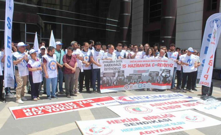 Adıyaman Eğitim ve Araştırma Hastanesi önünde basın açıklaması düzenleyen Adıyaman Tabip Odası Başkanlığına, Hekim-Sen, Sağlık ve Sosyal Hizmet Emekçileri Sendikası ve Aile Hekimleri Derneği destek verdi. Basın açıklamasına çok sayıda hekim ve sağlık çalışanı katıldı.
