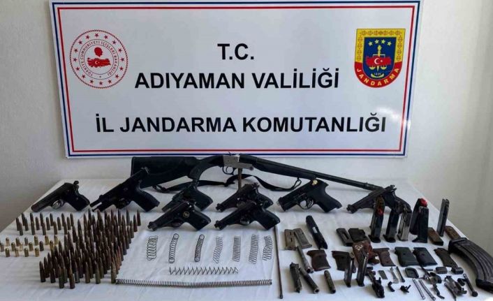 Adıyaman İl Jandarma Komutanlığı unsurlarınca yapılan istihbarı çalışmalarda, M.E., H.K., M.E. ve H.K. isimli 4 şüpheli şahsın silah bulundurduğu tespit edilmesi üzerine operasyon gerçekleştirildi. Şahısların evlerine yapılan operasyonda 8 adet ruhsatsız tabanca, 5 adet tabanca namlusu, 121 adet farklı çaplarda fişek, 23 adet boş tabanca şarjörü, 1 adet kaleşnikof şarjörü ve 1 adet ruhsatsız av tüfeği ele geçirildi.