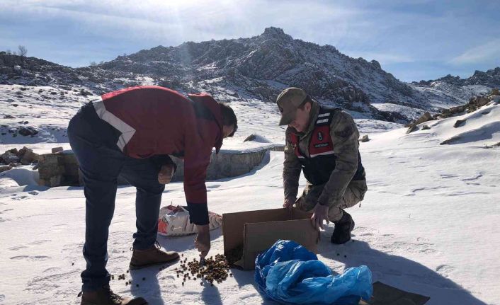 Adıyaman’ın Gerger ilçesinde jandarma ekipleri yaban hayvanları için doğaya yiyecek bıraktı.