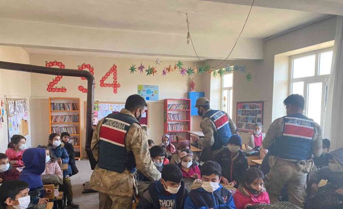 Montları alan öğrenciler jandarma ekiplerine teşekkür etti.