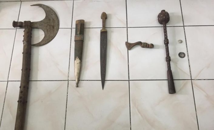 Edinilen bilgilere göre, İstihbarat Şube Müdürlüğü ve Tut ilçe Jandarma Komutanlığı ekipleri tarafından, yapılan çalışmalar kapsamında Tut ilçesi Çiftlik-Akçabel Karayolunda durdurulan bir otomobil içerisinde arama yapıldı. Gerçekleştirilen aramalarda 2 adet sikke, 1 adet balta, 1 adet gürz, 1 adet çekiç başı, 1 adet kama ve 1 adet kılıf ele geçirildi. Tarihi eserlere jandarma ekiplerince el konulurken otomobilde bulunan 2 şahıs gözaltına alındı.