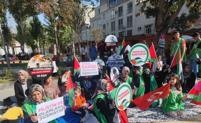 İsrail’in Filistin’e yönelik saldırılarını protesto etmek için çeşitli sivil toplum kuruluşundan kadınlar sessiz oturma eylemi başlattı.