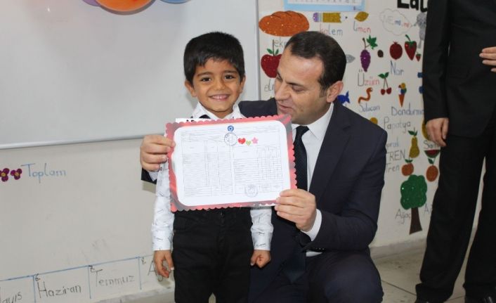 Düzenlenen karne dağıtım törenlerinde Kaymakam Saadettin Doğan, öğrencileri tebrik ederek yarıyıl tatile girecek olan öğrencilerle hatıra fotoğrafı çektirdi.