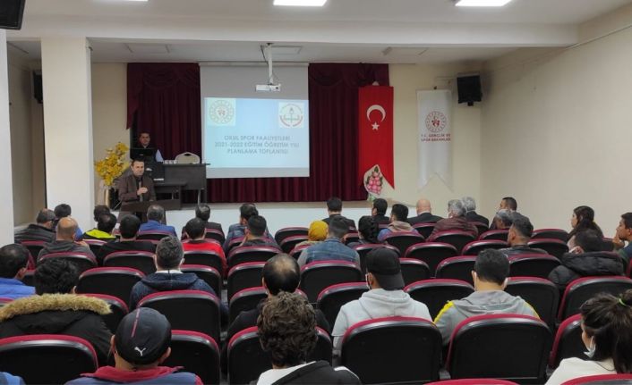 BİLSEM toplantı salonunda düzenlenen okul sporları faaliyetleri toplantısına, Spor Hizmetleri Müdürü Zeynel Abidin Deneri, İlçe Müdürü Mustafa Çiçek, Milli Eğitim Müdürü İbrahim Halil Tunçmen, Şube Müdürleri Mehmet Türk, Sezgin Yıldırım ve Hikmet Pınar, okul sporları il ve ilçe temsilcileri, beden eğitimi öğretmenleri ve antrenörler katıldı.