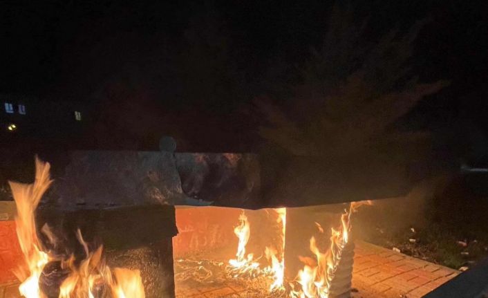 Adıyaman’ın Kahta ilçesinde parktaki bank alev alarak yandı.