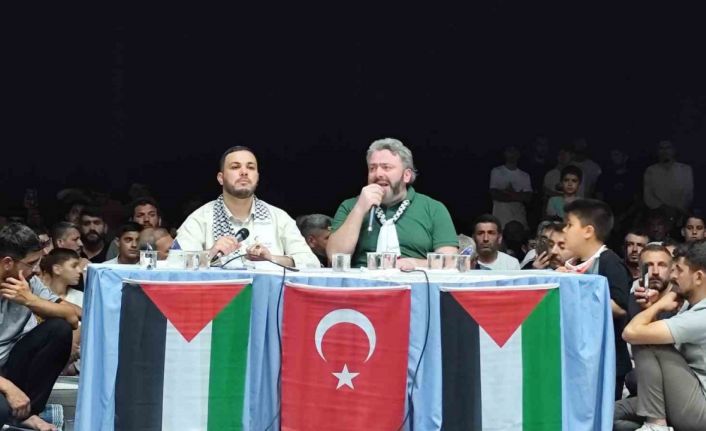 Kahtalı Mıçe Kültür Merkezi’nde düzenlenen konferansa, stk temsilcileri ve vatandaşlar Filistin’e destek için bir araya geldi.