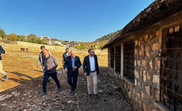 Adıyaman’ın Besni Kaymakamı Çağlar Partal, köylerde incelemelerde bulunuyor.