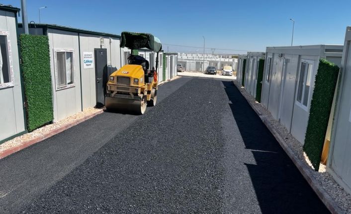 Adıyaman Belediyesi Fen İşleri Müdürlüğü ekipleri tarafından konteyner kent Altınşehir Mahallesi Bağpınar yolu üzerinde yer alan K-26 konteyner kent yaşam alanında asfaltlama çalışmaları devam ediyor.