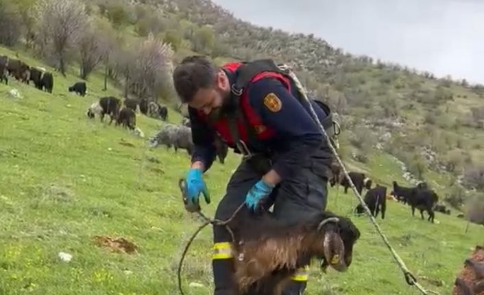 Adıyaman’ın Gölbaşı ilçesinde su kuyusuna düşen bir keçi, itfaiye ekiplerinin müdahalesiyle kurtarıldı.