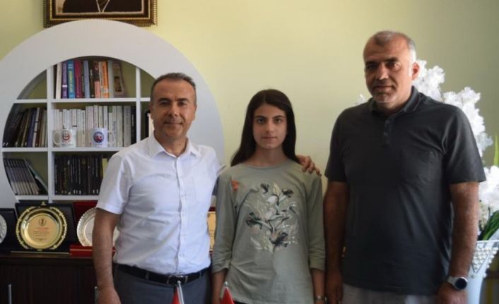 2023 LGS sınavında bütün soruları doğru bilerek Türkiye birincisi olan Tuğsuz Ali Ağa Ortaokulu öğrencisi Meryem Mehlika Yılmaz ilçe Milli Eğitim Müdürü Mehmet Demirel tarafından ödüllendirildi.