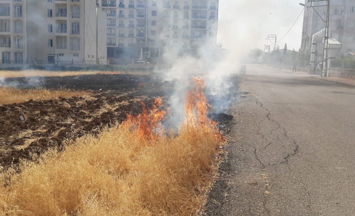 Adıyaman’da binalar arasındaki otluk alanda çıkan yangın mahalle sakinlerini korkuttu.