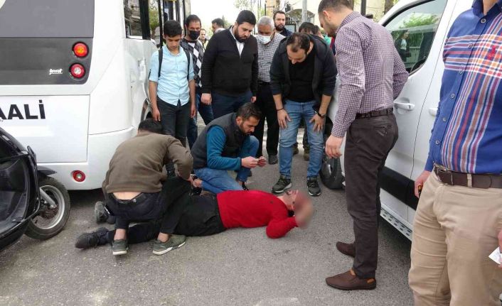 Adıyaman’da, minibüsün çarpması sonucu yaralanan ve şoka giren yaya, hastaneye gitmemek için herkese direndi.