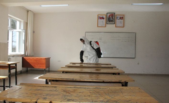 Lise öğrencileri tarafından üretilen dezenfektan ile Adıyaman’da okullar korona virüsüne karşı temizleniyor.