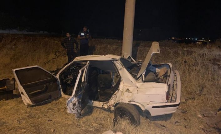 Adıyaman’ın Kahta’da ilçesinde otomobil önce yol kenarındaki tabelaya daha sonra elektrik direğine çarparak durabildi.