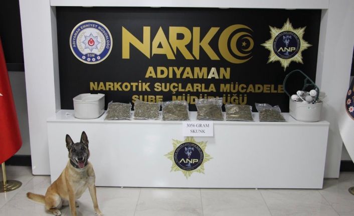 Adıyaman’da Narkotik Suçlarla Mücadele ve İstihbarat Şube Müdürlüğü ekiplerince yürütülen çalışmalar kapsamında, bir otobüste yapılan aramada su arıtma cihazı içerisine gizlenmiş halde toplam 3 kilogram skunk maddesi ele geçirildi.