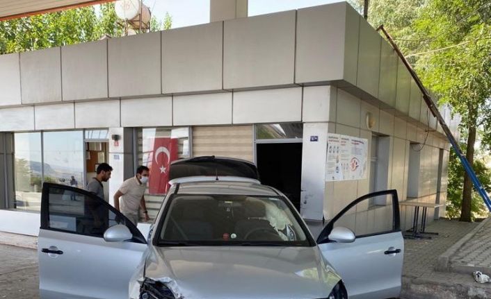 Adıyaman’ın Börgenek yol ayrımında bulunan akaryakıt istasyonuna otomobil daldı.