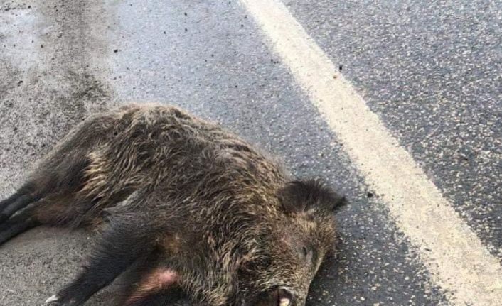 Kazayı gören vatandaşlar, yolda telef olan yaban domuzunu başka kazalara yol açmaması için yol kenarına aldı.