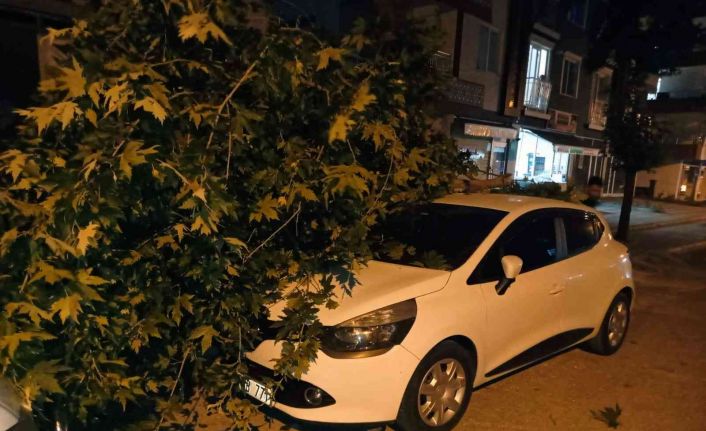 Adıyaman’da rüzgara dayanamayarak kırılan ağaç dalının üzerine düştüğü otomobil zarar gördü.