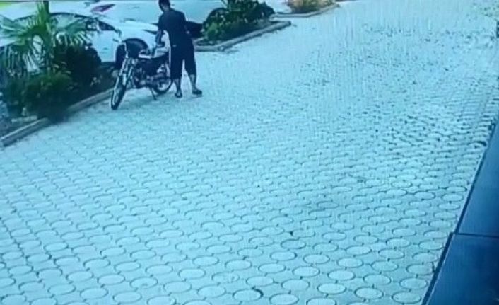 Adıyaman’da, bir şahıs gözüne kestirdiği park halindeki motosikleti sürükleyerek çaldı.