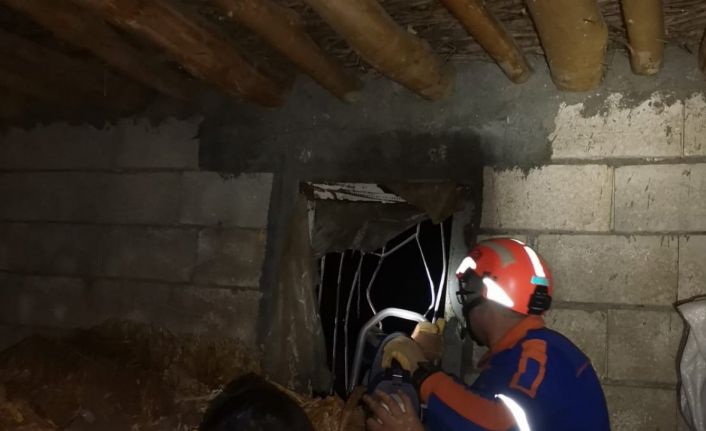 Adıyaman’da, bir ahır pencere korkuluklarına sıkışan sokak köpeğini AFAD ekipleri kurtardı.