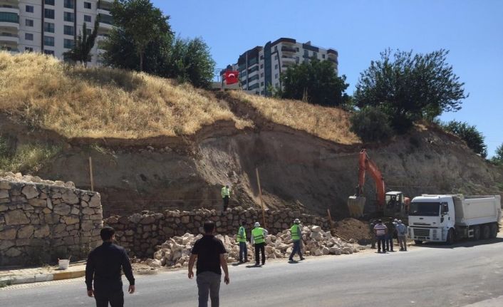Adıyaman Belediyesi Fen İşleri Müdürlüğü tarafından, Petrol Caddesi’nde toprak kayma riski bulunan bölgeye istinat duvarı yapılıyor.