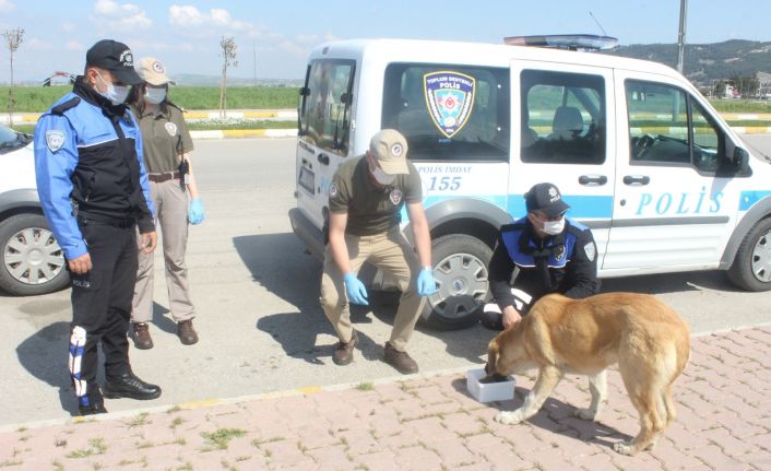 Polis ekipleri sokak hayvanlarının karnını doyurdu