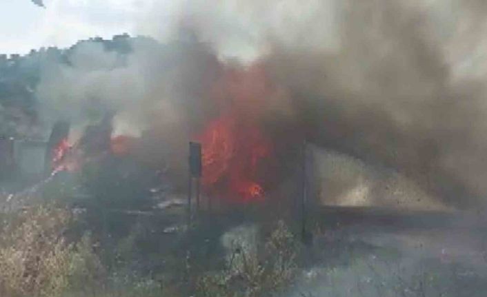 Adıyaman’ın Gölbaşı ilçesinde saman yüklü kamyon alev alarak yandı.