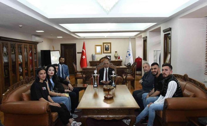 Şampiyon sporcular Rektör Turgut ile bir araya geldi