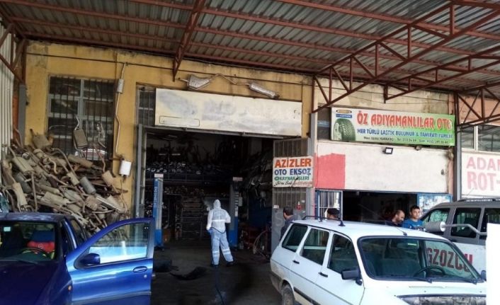 Adıyaman Belediyesi, korona virüsün yayılmasını önlemek amacıyla Küçük Sanayi Sitesinde dezenfekte çalışması gerçekleştirdi.