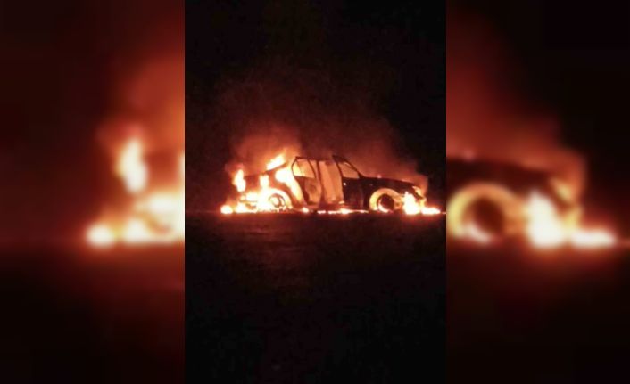 Seyir halindeki otomobil yanarak kullanılamaz hale geldi
