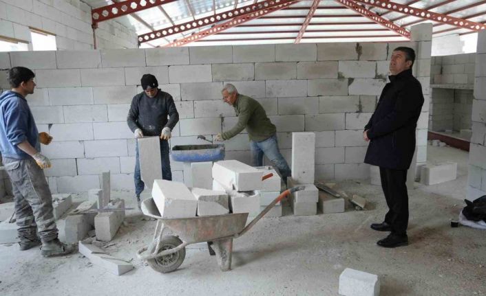 Belediye Başkanı Abdurrahman Tutdere, inşaat alanında yaptığı incelemeler sırasında sadece bilgi almakla kalmadı, çalışmaları bizzat destekledi. Eline malayı alan Başkan Tutdere, duvar ören ustalara yardım etti.