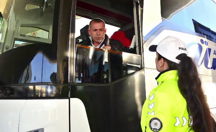 Trafik Denetleme Şube Müdürlüğüne bağlı polis ekiplerince eğitim-öğretimin ara tatile girmesinden dolayı artan seyahatlerde kazaların önüne geçilebilmesi amacıyla çalışma yapıldı. Polisler, yolcu otobüs sürücülerini trafik kurallarına uymaları konusunda uyardı. Bilgilendirmelerde bulunan polisler, aynı zamanda emniyet kemerinin de öneminden bahsederek hız kurallarına da uyulması gerektiğini vurguladı.