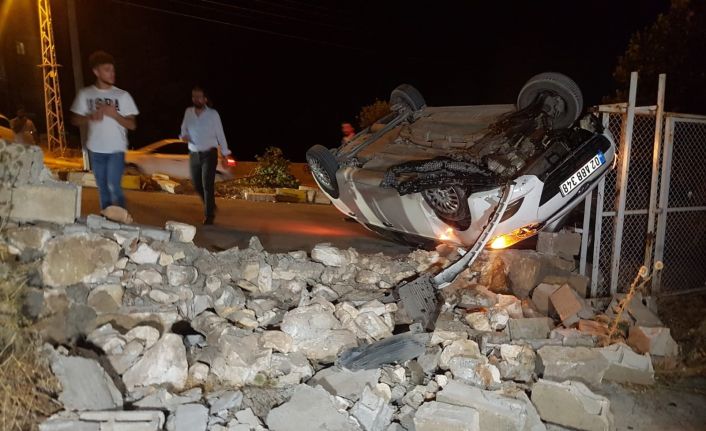 Adıyaman’da sürücüsünün direksiyon hakimiyetini kaybettiği otomobil, taklalar attıktan sonra bir ikametin bahçe duvarına çarparak durabildi.