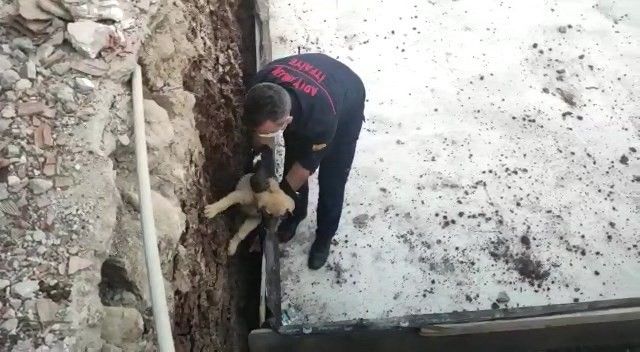 Adıyaman inşaat temeline sıkışan yavru köpek itfaiye ekipleri tarafından kurtarıldı.