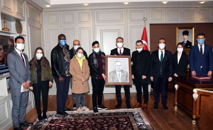 Ziyarette ayrıca, Suriyeli göçmen Halit El Subeyh, kara kalemle çizdiği Vali Mahmut Çuhadar’ın portresini takdim etti.