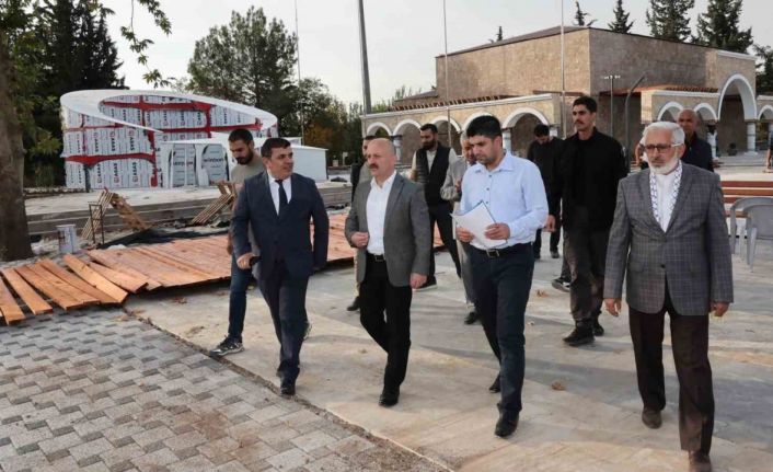 Vali Osman Varol, İl Özel İdaresi tarafından kahraman şehitlerin aziz hatıralarını yansıtacak bir konseptte tasarlanan ve yeni mezarlıkta bulunan Adıyaman Şehitliği Projesinin uygulandığı alanda incelemelerde bulunarak devam eden inşaat çalışmaları hakkında Özel İdare Genel Sekreteri Sami Işık’tan bilgiler aldı.